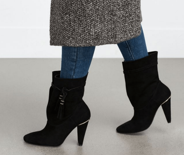 Her sezon Zara’da kendine yer bulan topuklu botlar, yine raflarda. Ancak bu sezon Zara botlarında bol bol püskül kullanmış. İster eteklerle ister pantolonlarla kombinleyebileceğiniz bu botları Zara, siyah yoğunlukta çalışmış. Yine deri ve süet çeşitlerini bulabileceğiniz bu botlarla modern ve şık bir stil yakalamanız mümkün.